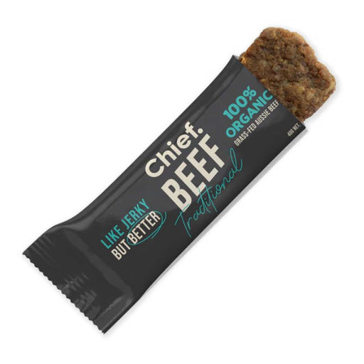 Chief$7.95| /A clean, meaty snack to satisfy your savoury cravings. Each bar starts off as 80g of organic grass-fed beef brisket and topside. We slow dry the ba...