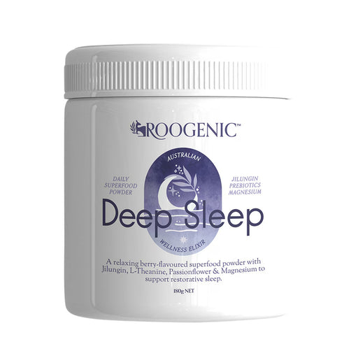 Roogenic Australian Wellness Elixir Daily Superfood Powder Deep Sleep 180g Deep Sleep is a nightly superfood powder designed by naturopaths to help...