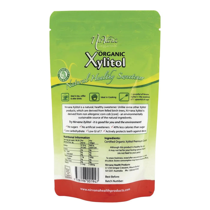 Nirvana Organics Organic Xylitol is a natural, low-calorie sweetener derived from organic sources, offering a taste and sweetness comparable to sugar. With 40% fewer calories than sucrose, it serves as an excellent sugar substitute for those managing calorie intake or seeking healthier alternatives. Notably, xylitol has a low glycemic index, making it suitable for individuals monitoring their blood sugar levels, including diabetics. Beyond its use in sweetening beverages and foods, xylitol is recognized for its dental health benefits; it can be added to water and used as a mouth rinse to help reduce the risk of tooth decay and improve oral hygiene. Incorporating Nirvana Organics Organic Xylitol into your diet provides a versatile and health-conscious way to enjoy sweetness without the negative impacts associated with regular sugar consumption.