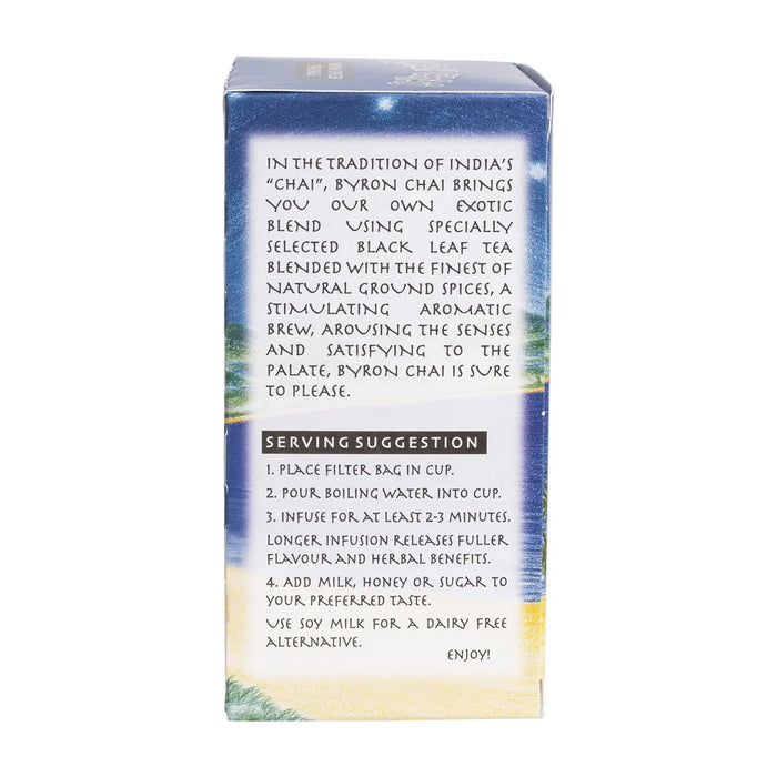 Byron Chai is a premium, handcrafted chai blend made with a rich combination of organic spices and black tea, designed to deliver a warming, aromatic, and revitalizing experience. Featuring spices like cinnamon, cardamom, ginger, cloves, and black pepper, it offers anti-inflammatory, digestive, and immune-boosting benefits. This all-natural chai is perfect for creating soothing lattes, traditional chai tea, or spiced desserts, providing a comforting and flavorful drink with numerous health benefits. Ideal for those seeking a natural energy boost, improved digestion, or a relaxing ritual, Byron Chai is a delicious and healthful addition to your daily routine.