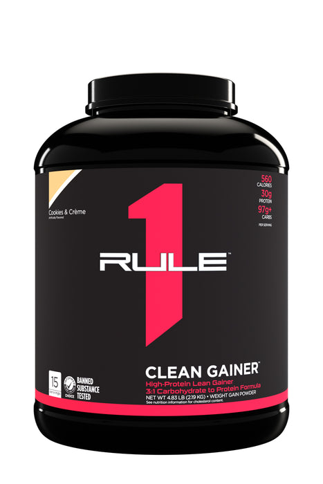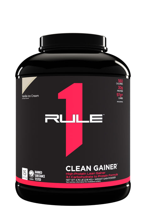 Rule 1 Clean Gainer is a premium mass gainer with high-quality protein, complex carbs, and healthy fats to support muscle growth and recovery. Ideal for athletes. With 560 quality calories from a blend of full-spectrum proteins, multi-source carbs, and energy-dense lipids, Rule 1 Clean Gainer™ is a lean, mean way to amass solid gains. Each serving features a 3:1 carb to protein ratio combining 97g+ of quick-fuelling carbs with 30g of complete protein from whey, milk, and casein to help add incremental size to a growing foundation.
