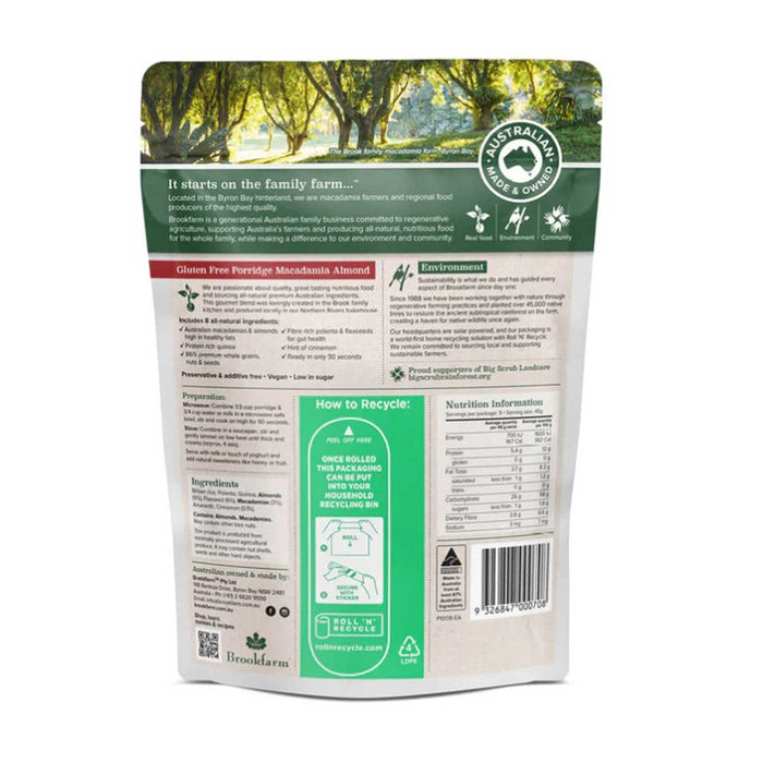 This gourmet blend from Brookfarm Gluten-Free Porridge was lovingly created in the Brook family kitchen and produced locally in our Northern Rivers bakehouse.