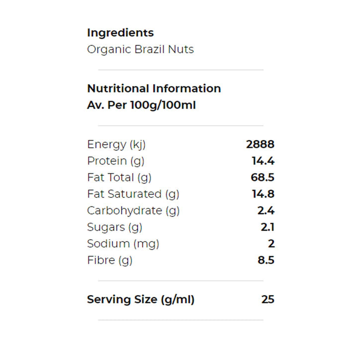 These Organic Brazil nuts are organically grown and sustainably sourced. Brazil nuts have a crisp yet buttery texture and an earthy taste which is perfect for snacking, creating homemade nut milks or nut butters. Also rich in selenium, healthy fats, protein, and fibre.