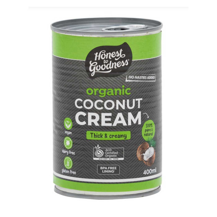 Honest to Goodness Coconut Cream is made from the pure flesh of certified organic coconuts, which are simply grated and pressed. No thickeners, sweeteners or diluters, this coconut cream is rich and creamy - just how we like it!