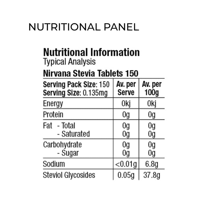 Nirvana Stevia tablets have been developed and formulated with extensive research to ensure the purest, highest quality and superior tasting Stevia product that is also easy to use. Only the most natural best quality, “NON GMO” ingredients have been selected, to provide a healthy, non-caloric safe and great tasting product for everyone to enjoy.