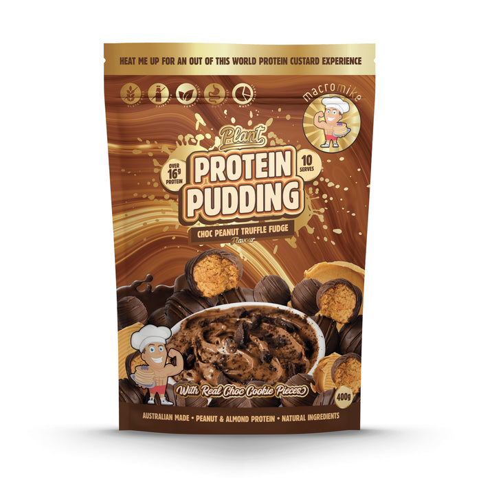 Choc Peanut Truffle Fudge: Peanut Protein, Almond Protein, V/GF Chocolate Biscuits (Tapicoa Flour, Chick-Pea Flour, Raw Sugar, Cocoa Solids, Rice Bran Oil, Cocoa Butter, Cocoa Powder, Sodium Bicarbonate, Salt), Natural Flavours, CoconutMilk Powder, Coconut Nectar, Himalayan Rock Salt, Guar Gum, Monk Fruit Extract, Stevia (Steviol Glycosides).