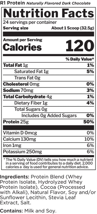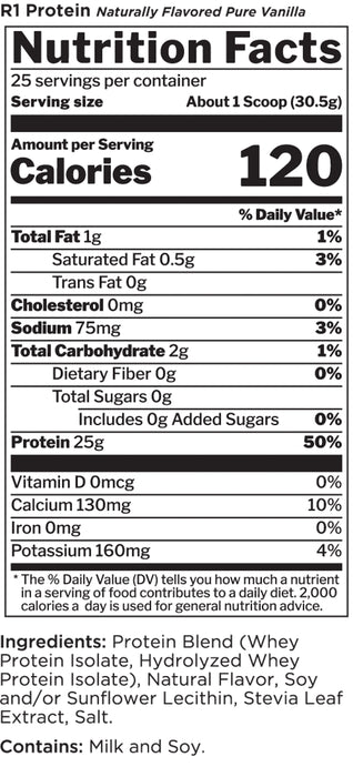 Naturally Flavored & Sweetened R1 Protein is a fast acting protein and works well first thing in the morning and before or immediately after workouts to help effectively deliver the vital amino acids your muscles need for optimal performance.