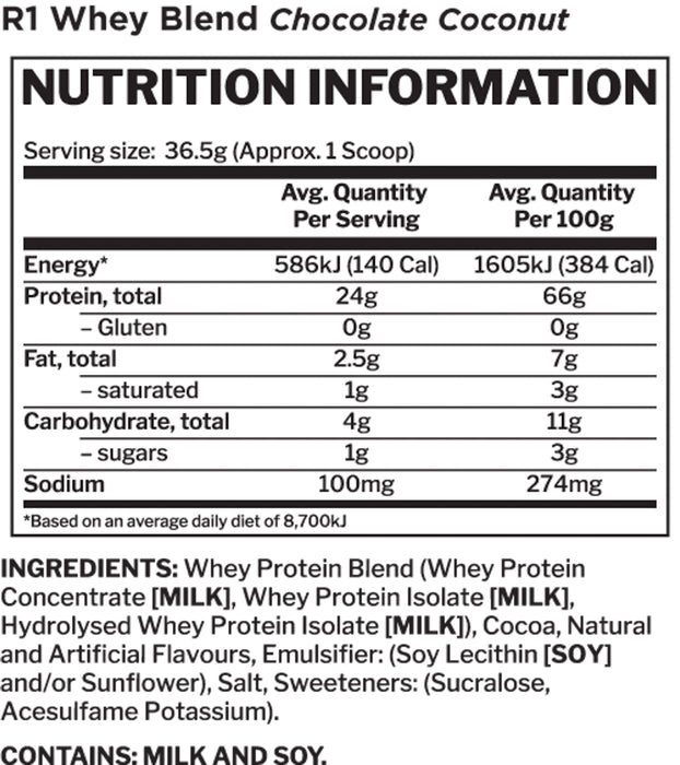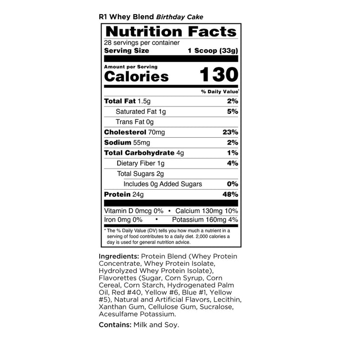 Rule 1 Proteins three-whey blend offers the perfect mix of nutritional quality, great taste, and bang for your buck. 100% Whey Protein from whey concentrates, isolates, and hydrolysates, 24 grams of protein per scoop, and packed with naturally-occurring EAA, BCAA, and glutamine. An overachiever in every way – except price!