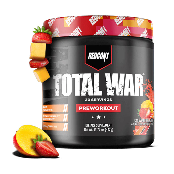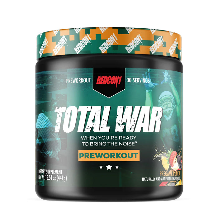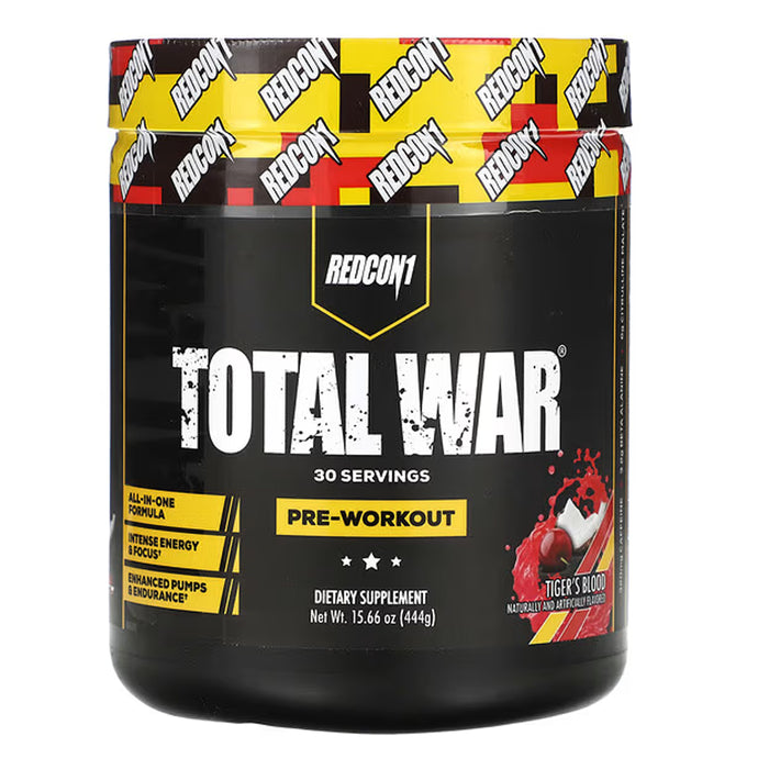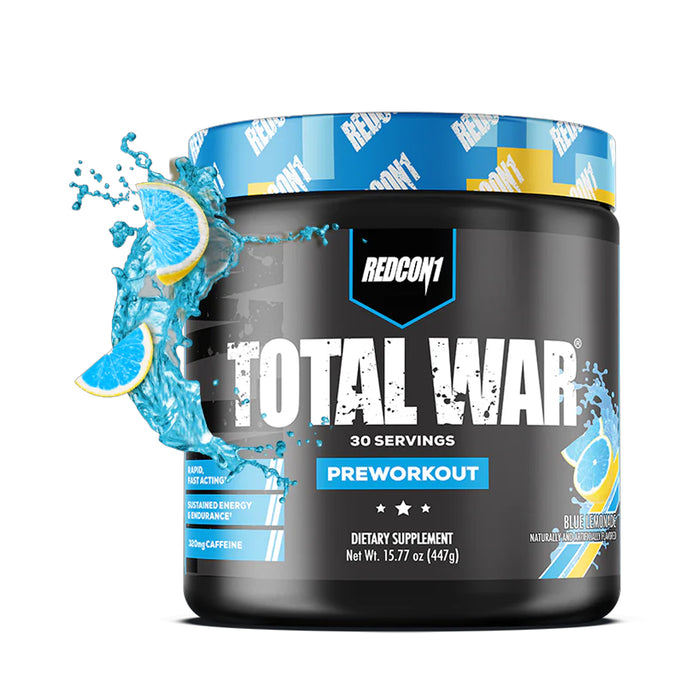 Train and compete with lights out intensity and energy. Redcon1's Total War® is what every pre workout wishes it was, packing more fire power per serving than anything in its class. Whether you train before work or school, middle of the day, or later in the evening, Redcon1's Total War® pre workout has the ability to come through every time out. The powerful combination of stimulants and focus factors along with N.O. compounds makes Total War® an all-in-one pre workout supplement. Enjoy the most energy, focus, and skin splitting pumps you’ve ever felt during a workout. You won’t want to go home at 30 or 40 minutes, but instead somebody will need to pull you out of the gym. Redcon1's Total War® is not for the faint of heart, but for the serious athlete or gym goer who expects to perform at the highest level of readiness when called upon.